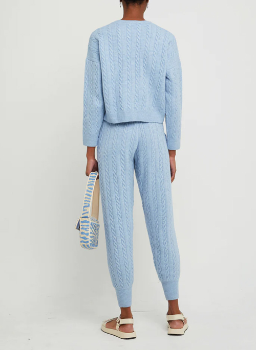This soft set comes with an easy, cable knit sweater and matching joggers. Finished with functional pockets and an easy tie waist.
