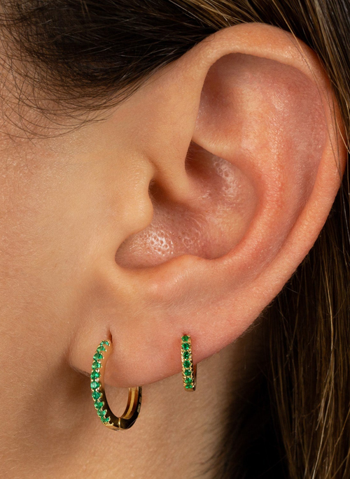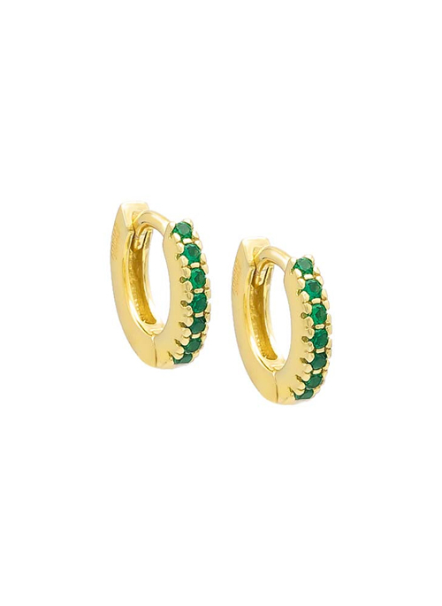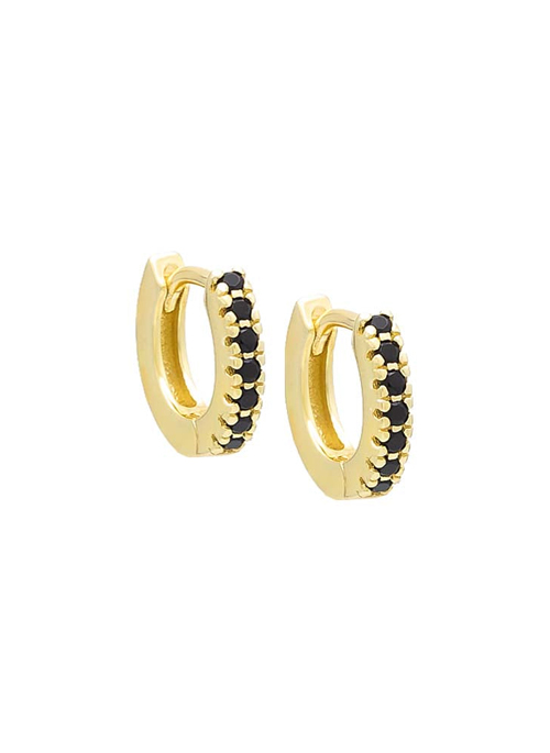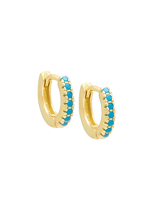 Flaunt a modern redo of a sparkly classic in Adina's Pavé Colored Mini Huggie Earring, featuring a series of colorful CZs set into a petite huggie. Wear this gem in a variety of tones ranging from vibrant turquoise to onyx black. This gem brings a contemporary take to a timeless earring essential. Stack it up with your favorite hoops, studs, or drops for an elegant yet carefree view.
