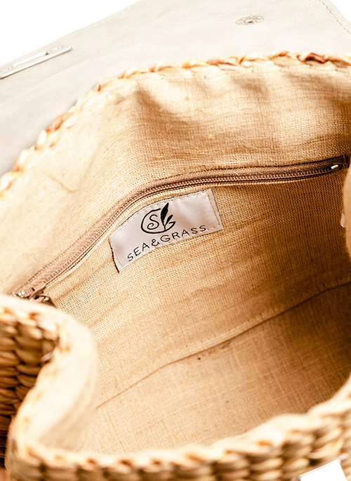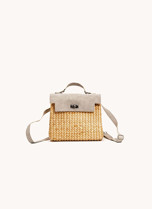 The Handcrafted Backpack Features A Vegan Leather Top And Adjustable Straps. It's A Backpack, Tote, And Briefcase All In One. The Versatile Tote Comes In Cognate And Grey Paired With Natural Seagrass Fibers.