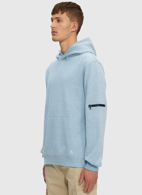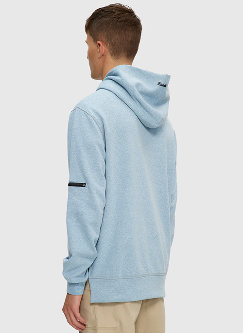 Triblend pullover hoodie. Features baby-rib cuffs & hem. Zippers at sides & zippered pocket on sleeve. Tonal embroidered Kuwalla logo at front hem. It is part of our Triblend capsule.