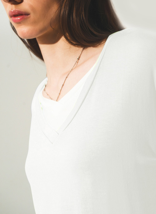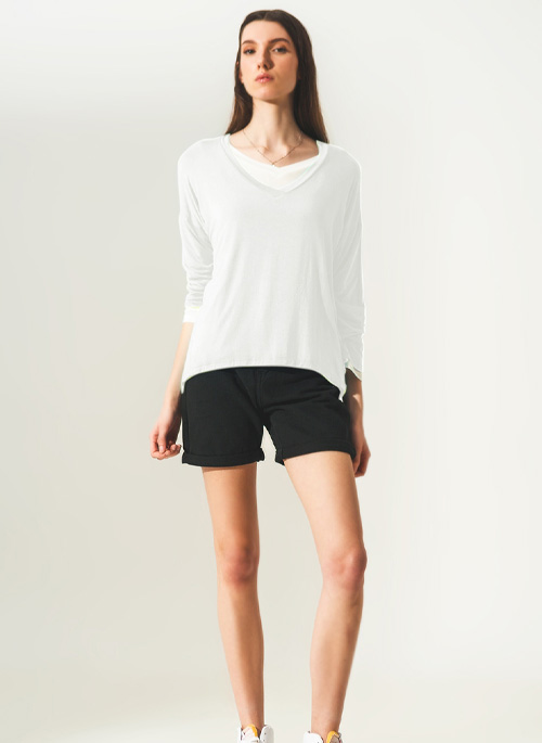 NEW CREAM LONG SLEEVE V NECK TOP IN MODAL