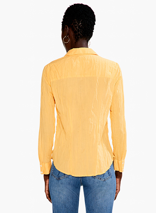 Crisp, crinkled, and oh so cool. This intentionally crinkled shirt (put the iron down!) is a modern twist on the classic long-sleeved button up shirt. The texture adds both comfort and style. Wear it tucked or untucked, with everything from casual denim to dressier pants that are ready for the office. Mindfully Made of 100% lightweight and breathable cotton.Details: