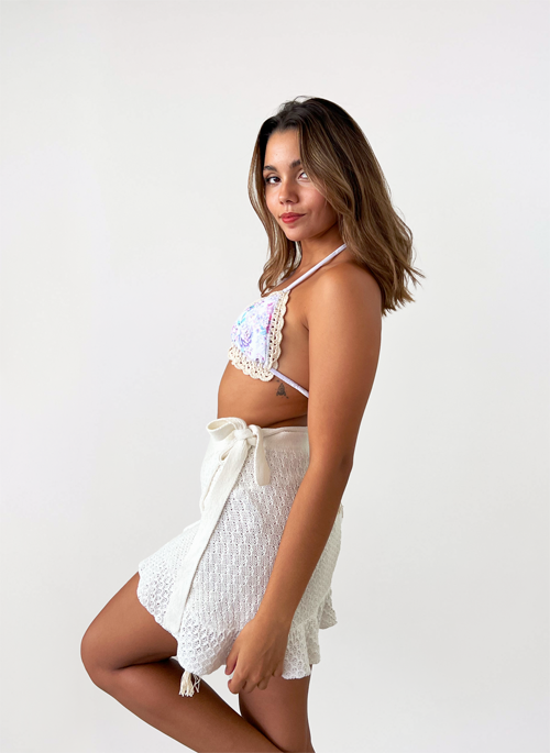 The perfect crochet skirt with adjustable strips on the side.