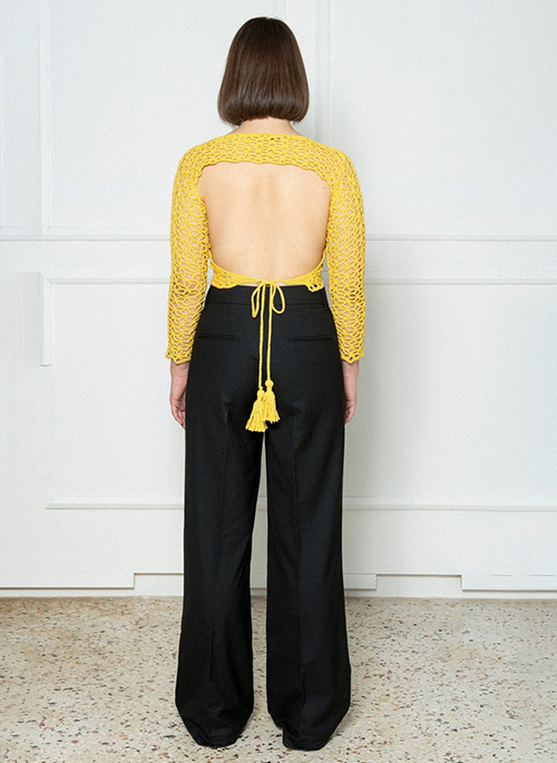 This hand knitted top is made from softs, luxurious and 100% sustainable yarns designed for summer nights.