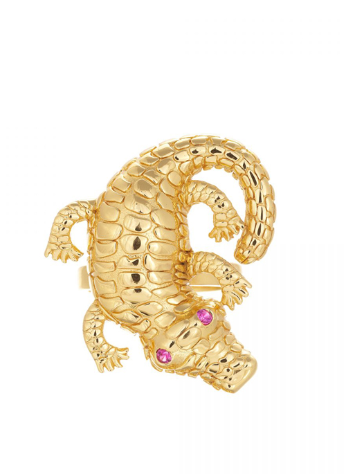 A highly original and fascinating crocodile ring, complete with a coiled tail and hypnotic, glittering green or red cubic zirconia eyes. Meticulously crafted and boasting curiously life-like features and artistic engravings.