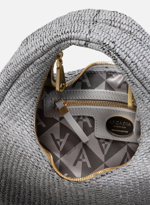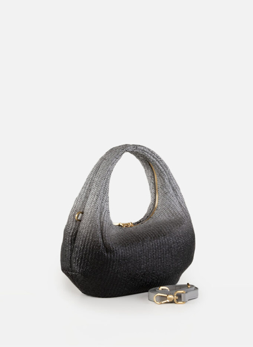 The Arcadia spring22 Croissant is crafted from an exclusive degradè fabric straw. The lines combine softness and 80’s style trends for a comfortable and lightweight silhouette.