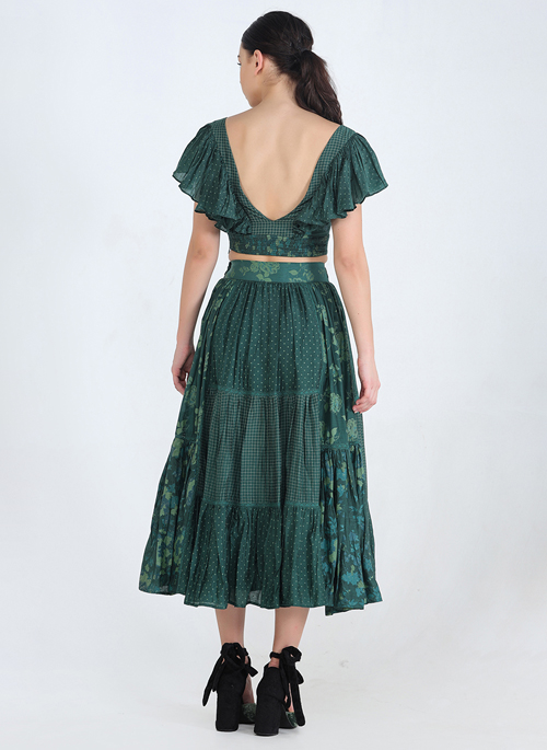 Green Mul Printed Crop Top With Ruffled Sleeves Moss green Silk multi