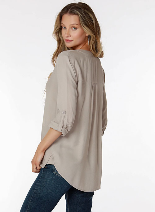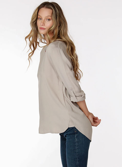 Amazing light weight beach crepe that gives this top its chic and effortless feel. Leave the sleeves at 3/4 length or unroll for a long sleeve tunic.