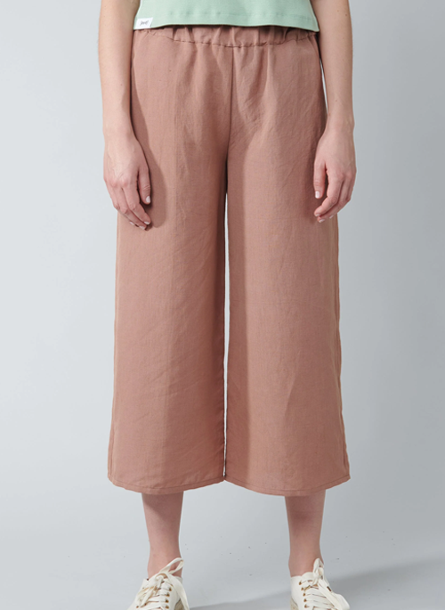 Whether plain in brown or as a striped eye-catcher - in any case sytlish. Calf-length, made from 100% organic cotton, with a comfortable elastic waistband and side pockets.