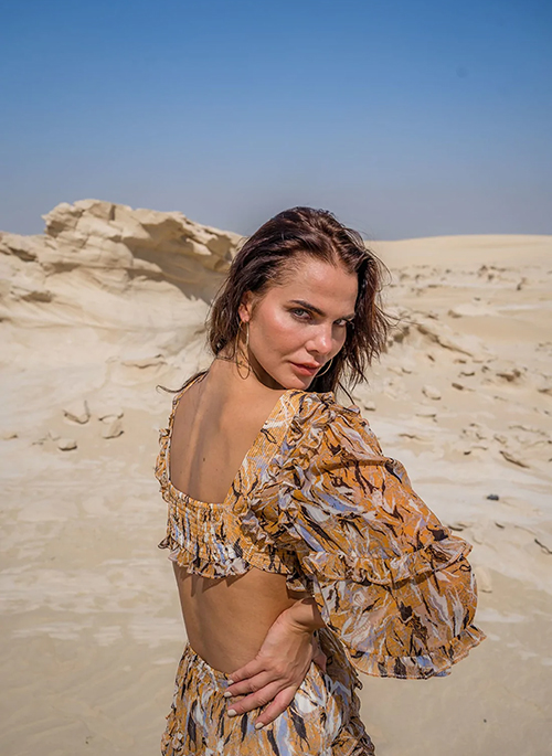 Enjoy the best summer moments wearing this head-turning, tiered georgette dress, as feminine as it gets. It has a deep neck, cut-outs on sides and semi open back for true resort feel.