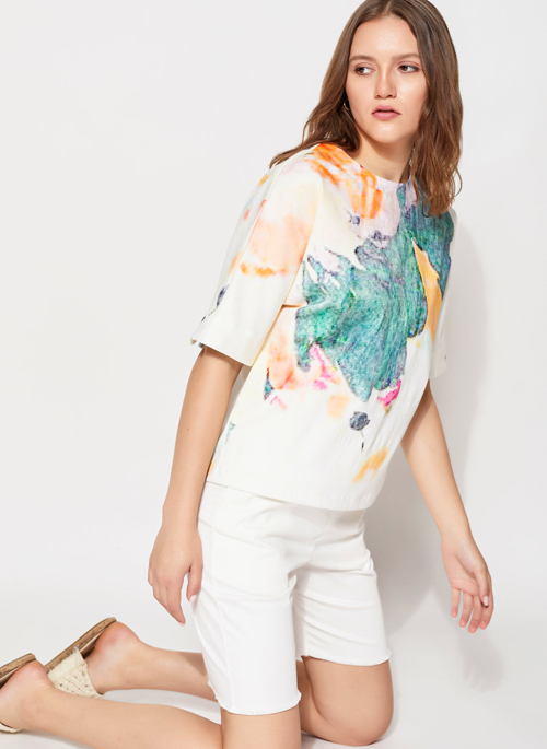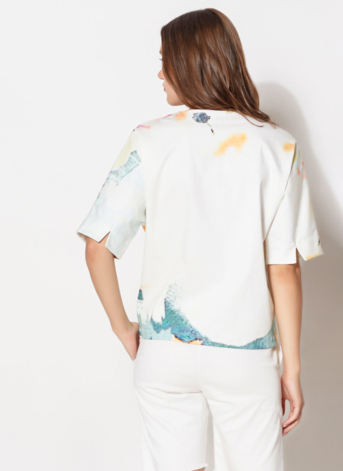Featuring this white Oversized Tee with a hint of stretch has an abstract botanical print. Made from cotton, it has a crewneck and short sleeves with a back-slit.