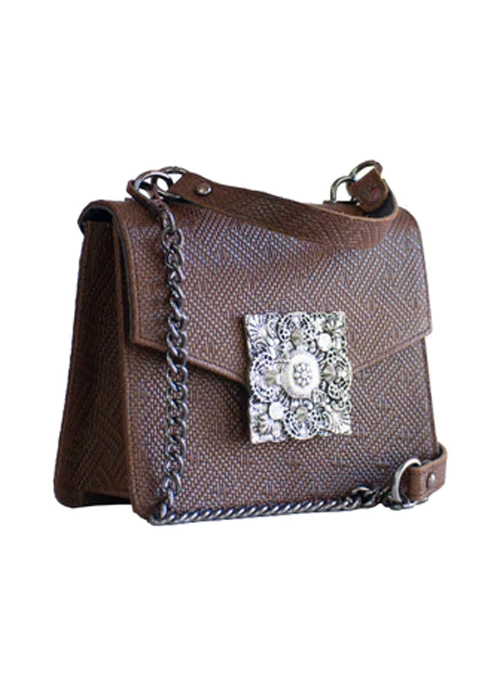 Dahlia Leather Shoulder Bag is a stunning leather jewel to wear. A beautiful square shape little handbag that can be also held as a shoulder bag. The chain is adjustable in two lengths, cocktail and cross body to give you more options for your looks. The distinctive metal decorative has engraved flowers which give a vintage and romantic touch to your appearance.