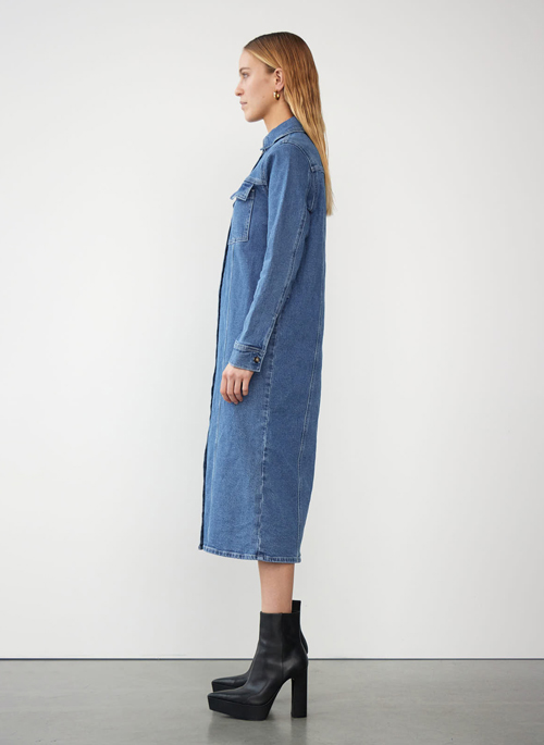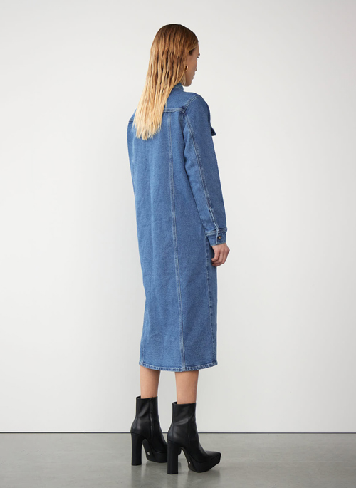 Beautiful midi denim dress that is a combination of your favorite denim shirt and your hottest dress. Your all-in-one solution for casual elegance. The quality is super soft genuine denim with stretch to ensure maximum comfort. The dress is designed with beautiful buttons and and tie waist. The model is 173 cm tall and is seen here in a size small. The dress is true to size and we recommend that you choose your normal dress size. #Betterwardrobe