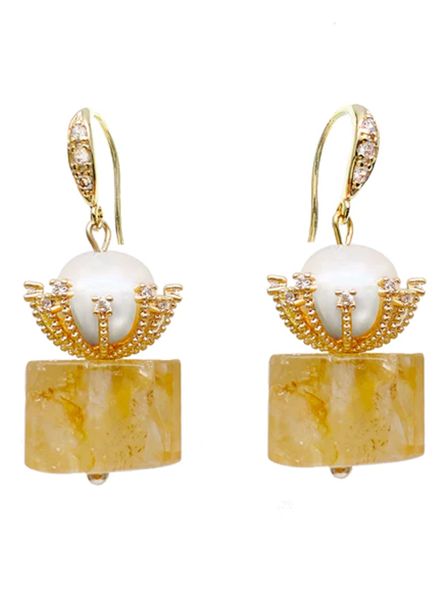 This pair of handmade earrings is made of freshwater pearl with cylinder and Japan golden plated brass findings. It's pretty and feminine which can be worn with dress, blouse or knitwear. Pair with Farra earring and bracelet to complete your look. Also, it is a lovely gift for birthday, anniversaries or festivals.