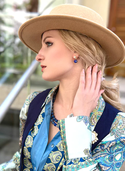 This pair of earrings features lapis with freshwater pearls with Japan golden plated brass findings.It's simple but sophisticated which can be wear from day to night for daily life or any occasion. Pair with Farra necklace to complete your look. This is also a lovely gift for birthday or anniversaries.