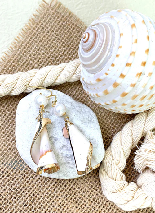 This pair of earrings is made of natural shell with freshwater pearl with Japan golden plated brass findings. It can be worn with denim, knitwear or midi dress from day to night for any occasion. It's pretty and feminine, tie up your hair and pair with Farra neckace to complete your summer look. Also, this is a very lovely gift for birthday, anniversaries or festivals. It will be contained in a nice jewelry box with well packed.