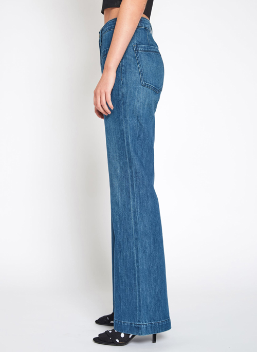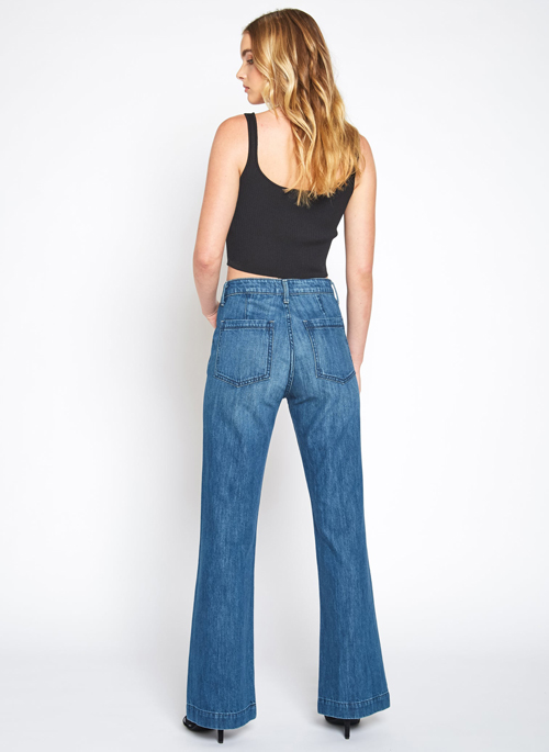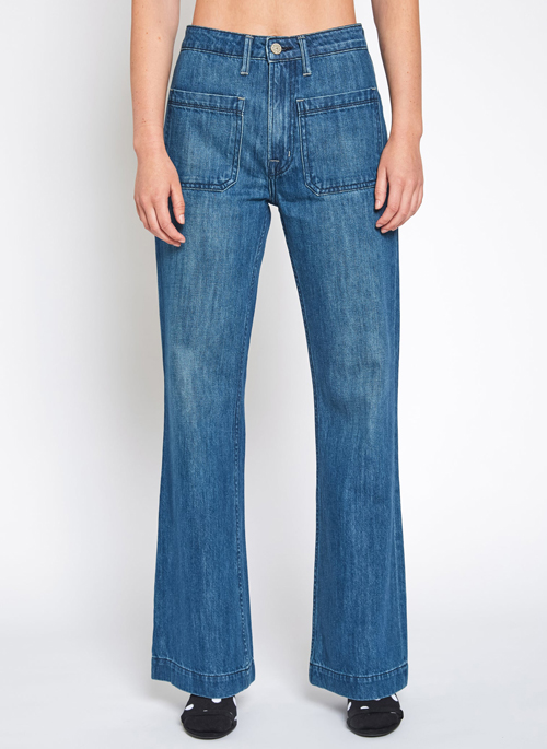 High-rise wide flare with patch pockets. Daphine is a 70s-inspired wide-legs with a high rise, 33 1/2-inch inseam, patch pockets, and a frayed hem.
