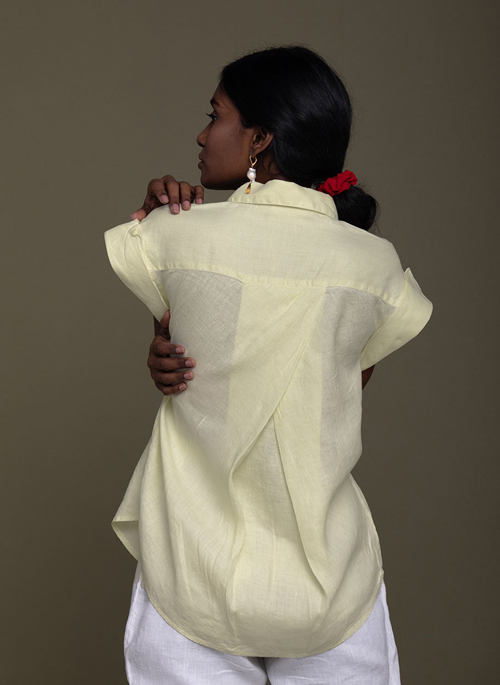 Simple and classic, this shirt is a wardrobe must-have with detailing on the back for a shapely silhouette. The triangle inside the sleeve coves up bra peek-a-boos!