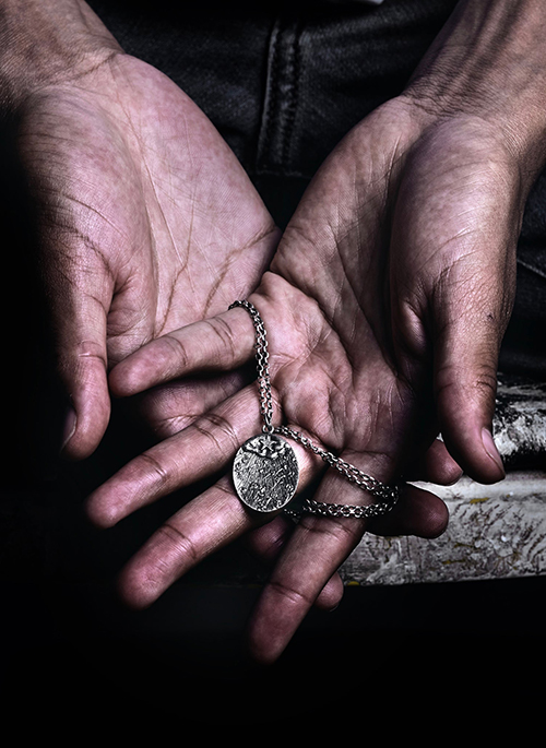 - 1" antiqued sterling silver medal necklace on 20 or 24" chain