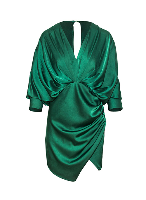 You will feel extremely joyful in this dress. Beautiful deep green color and unusual cuts on the back and front of the dress give it a unique character.