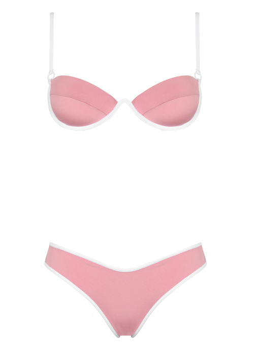 Your classic and must-have bikini in pink. Top with beard, removable cups and adjustable straps that will give you a perfect fit. Classic V-shaped bottom with Brazilian coverage.