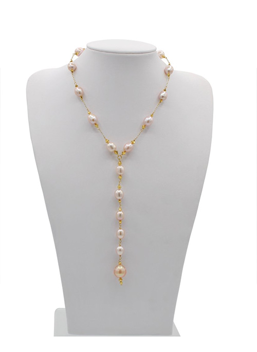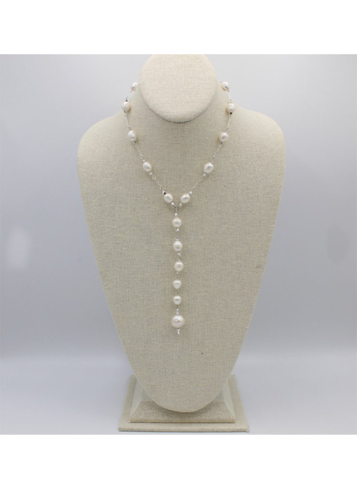 Hand Worked Potato and Baroque Pearl with Cut Crystal and Fine Chain with Magnetic Clasp.