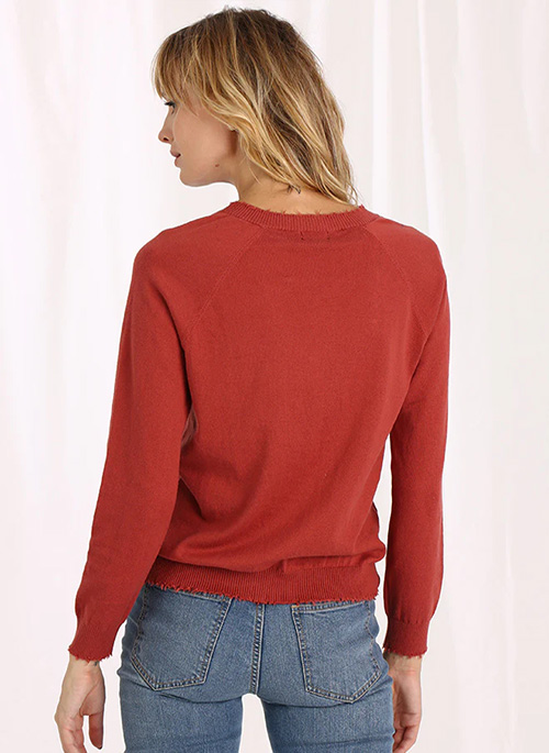 Forever a Minnie Rose fave, this delicious style is one that is forever in fashion and will always complete any outfit. Features distressed edges on the cuff and hem in a reverse color print for a casual and refreshing look.