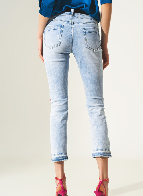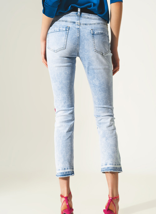 NEW DISTRESSED STRAIGHT JEANS WITH HEM DETAIL IN BLUE