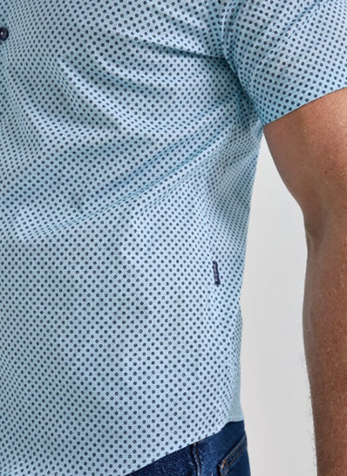 Our Light Blue Dot Short Sleeve Print Shirts are made with cotton - an ideal fiber for the summer with natural breathability and moisture wicking. For extra comfort and ease of movement, we added stretch to these bases then silicone washed them for a super soft feel. All patterns are carefully designed in-house.