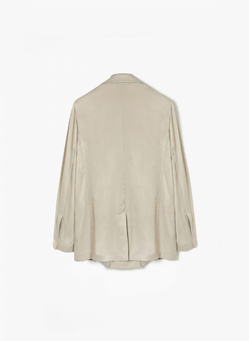 Relaxed-fit double-button front fastening blazer with slim-panel tie-detail lapels. Long-sleeve with an opening on the cuffs. Two front jetted pockets with dart waist and single-back vent. Half-lined interior with taped seams.Details: