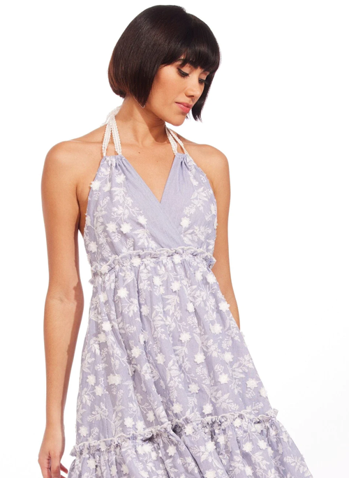 Brighten up your days with this fun fit and flare dress. The reworked halter with adjustable spaghetti straps makes this lightweight midi dress easy to wear.