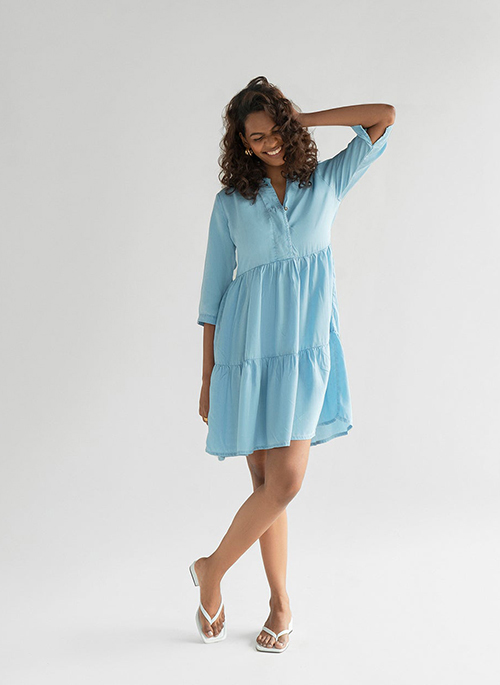 A tiered silhouette that is slightly fitted on top, this is an effortless dress you will come back to time and again