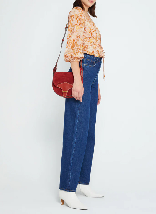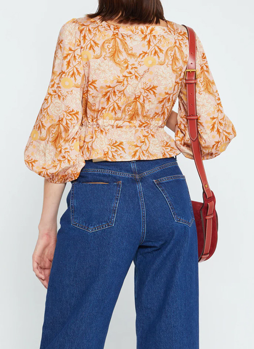 Regal yet feminine, this soft pink floral print complements the pleated details on this blouse perfectly. Finished with an adjustable waist tie and covered buttons.