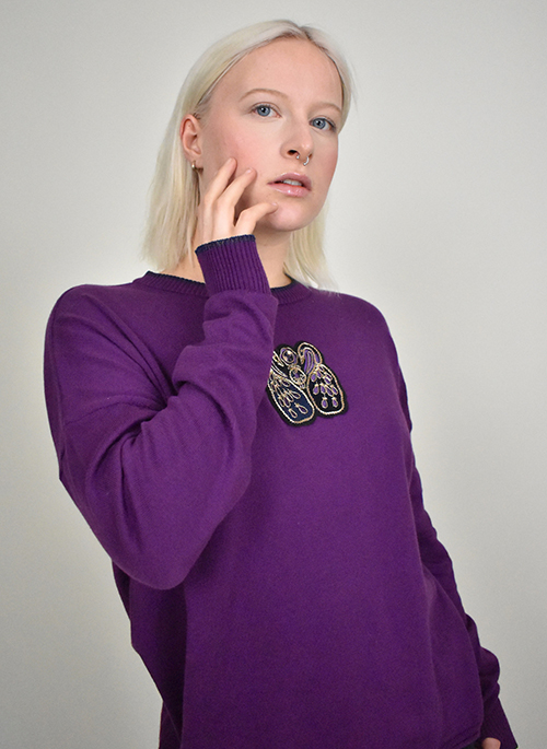 New this season, the organic cotton sweater EDA has been made by our Italian partner specialist in high-end knitwear. It is made of 98% organic cotton Oeko-Tex certified GOTS and 2% viscose certified and from sustainable and upcycling.Its long sleeves extend into a mitt, to cover your hands in winter. Our Italian knitwear specialists delicately craft this sweater. We assure you quality fabrics and a high quality realization. Its emblem in the center, hand-embroidered, consists of two peacocks. Our crest, matching the color of the sweater, will give you a unique style!