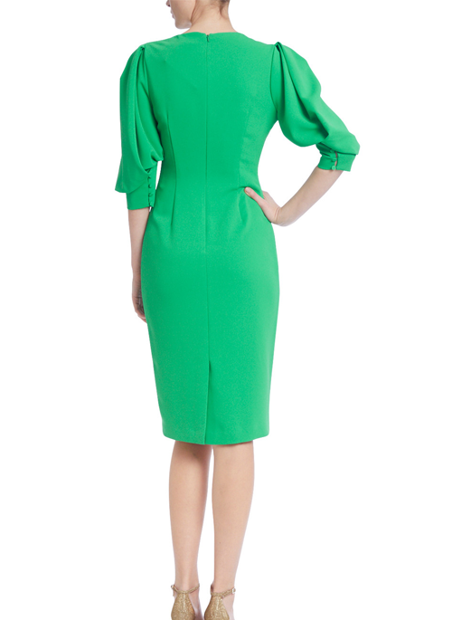 Elevate your style to unparalleled levels of sophistication and allure with the mesmerizing Blouson Sleeve Day Dress. The blouson sleeves lend a chic and contemporary feel, while the high neckline balances the look by exuding classic elegance and grace. The perfect balance of modern and timeless, this alluring gown is the ideal choice for most spring events.