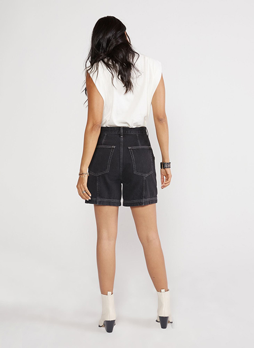 A chic, relaxed fit short in an organic cotton denim, utility pocketing and contrast seaming.