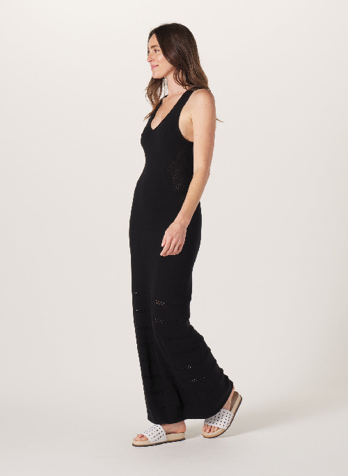 Understated elegance meets steamy summer nights in this sweater-knit summer dress. Made with 100% breathable cotton, the Eliza features subtle peekaboo open knit details at the hips and hemline, and a smoothing fit that glides over curves and hugs the body. Pairs well with heeled sandals and knowing your worth.Details: