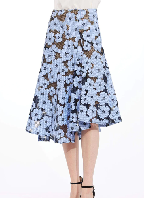 Details: Asymmetrical hem Midi length Cotton/Polyester Made in Los Angeles, USA