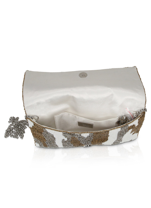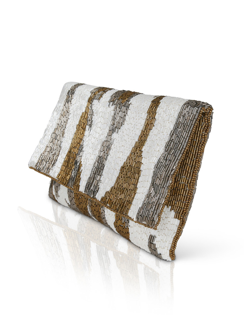 With impeccable craftsmanship and incomparable beauty, the Ellery Envelope Clutch is a breathtaking masterpiece. The arrangement of cylinder beads into an intricate ikat pattern creates a mesmerizing effect that exudes opulence and sophistication—the perfect accessory for any elegant affair.