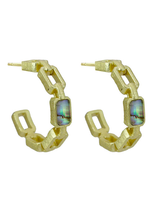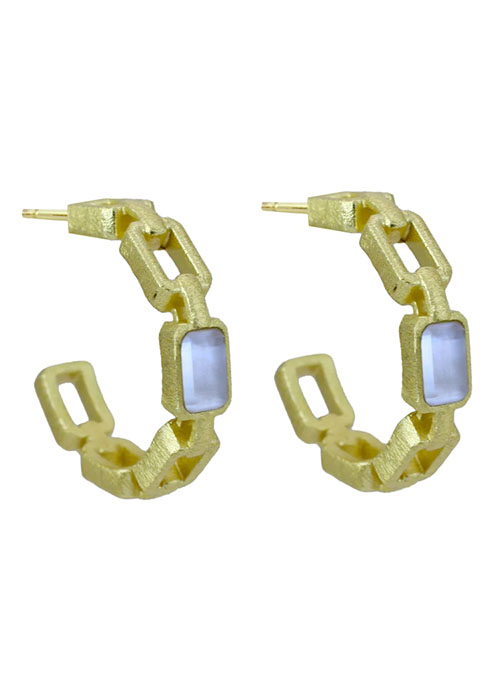 - 18k gold plated chain link hoop earrings with rectangular stone.