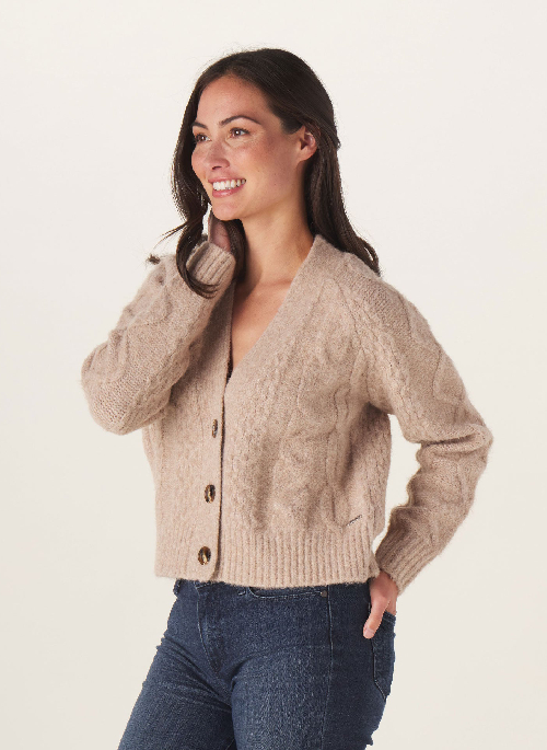 Meet our feminine take on the classic fisherman’s sweater. The Elsie Fisherman cardigan is a warm mid-weight sweater with a classic cable knit pattern. Wear this soft, plush sweater on its own or over your favorite fall outfits as the nights get colder.Details: