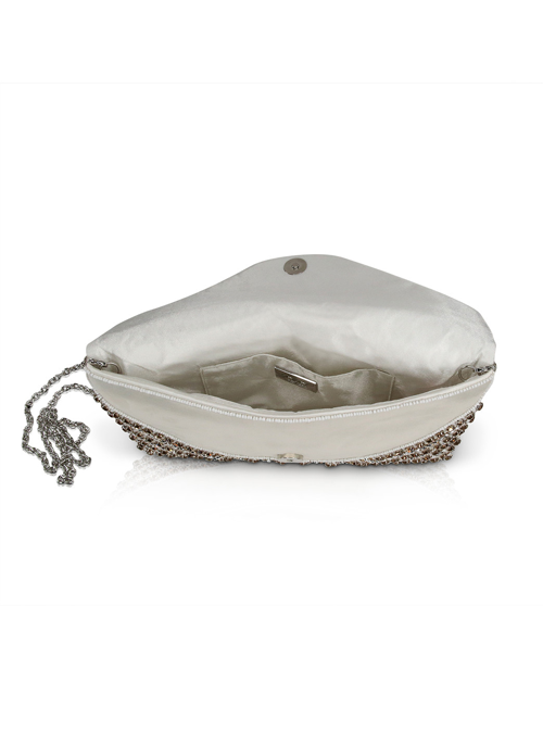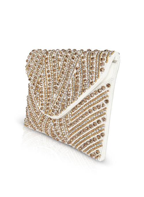 Step out in style with the Emma Beaded Envelope Clutch, your ultimate companion for any glamorous evening affair. This stunning clutch boasts a dazzling array of rhinestones & beads that radiate glamour and elegance from every angle. Meanwhile, the smooth satin finish on the back completes the look with a sense of refined sophistication, making it the perfect accessory to elevate any outfit.