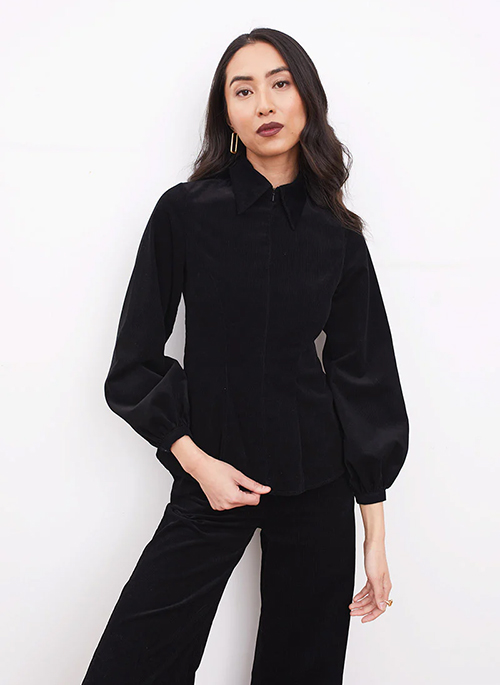 Our classic Emma shirt but zipped at the front in organic up-cycled end of roll cord fabric. Check out the adorable matching Scooby Trousers.