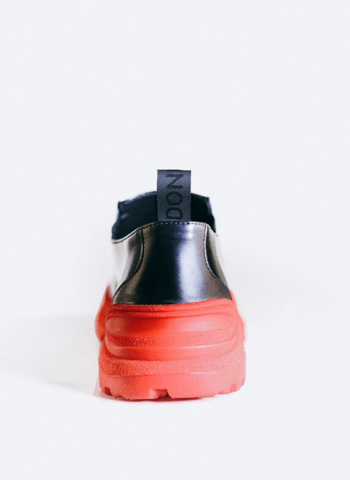 This design is crafted from sleek vegan leather, with a round toe and athletic details. The Donnant Donnant logo punctuates the pull tag.