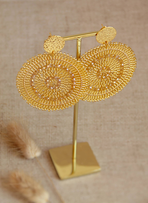 This stunning model is full of character! Reveal your personality with big colorful curls. The pearls and crystals are light and the jewel comfortable to wear.