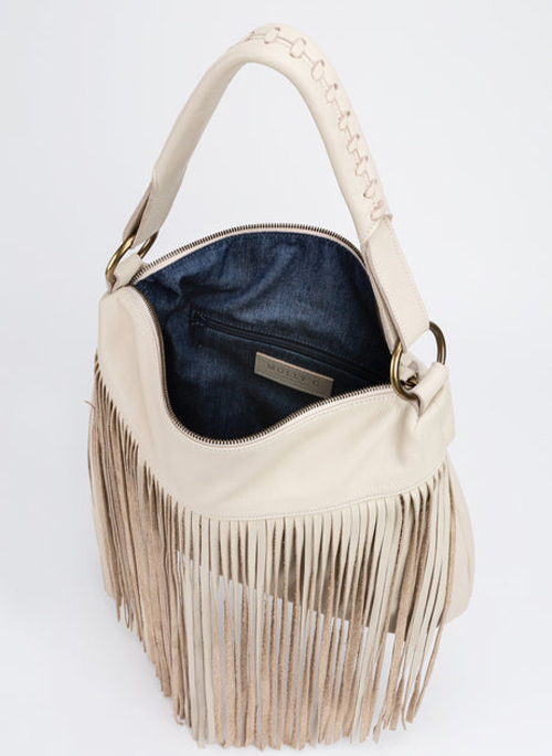 Gotta love Estelle, this free-spirited hobo. Swingy, sassy and stunningly fringed. Perfect first impression bag. Roomy inside. A real showstopper!
