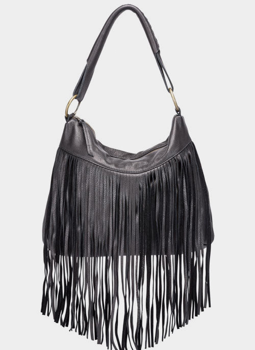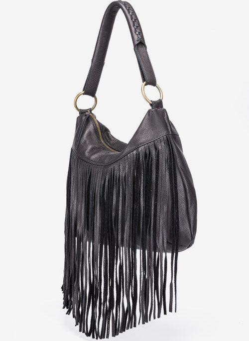 Gotta love Estelle, this free-spirited hobo. Swingy, sassy and stunningly fringed. Perfect first impression bag. Roomy inside. A real showstopper!