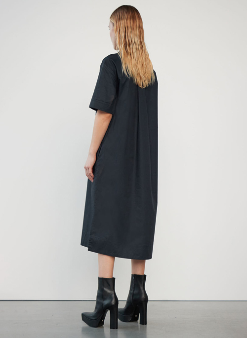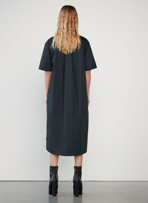 Beautiful shirt dress from WithBlack, designed with a classic shirt collar, chest pocket, short sleeves with fold up effect and an elegant button front with belt at the waist. The dress is versatile, has a perfect fit and will be a true everyday classic with a modern twist in your #bedrewardrobe. The dress is made from 100% certified cotton, giving the dress a deliciously light and airy feel. The dress is made from only the most exclusive cotton yarns. At StyleStore.com, we believe in the small luxury wardrobe, composed of the best materials in versatile silhouettes that you can wear season after season, all at prices that make sense. The model’s height is 173 cm, and she’s seen here in a size small.