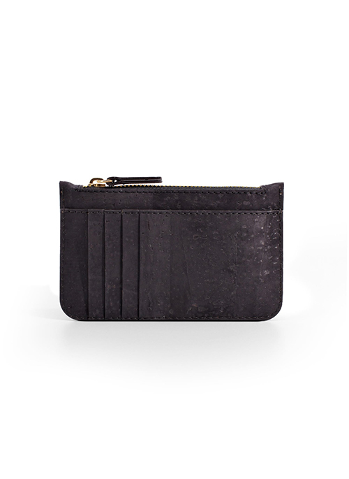 Sleek, chic, simple, and structured sums up the Cash wallet from Murmali. Crafted in Portugal from the finest black cork fabric, this compact piece features four card slots and a handy zipper pocket. On the outside, this bag features our discreet Murmali logo engraved by laser on the front.