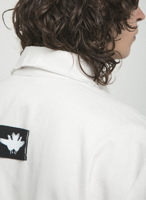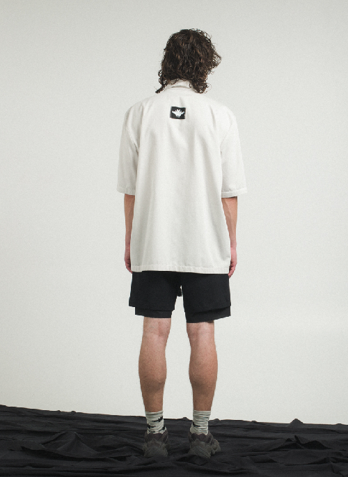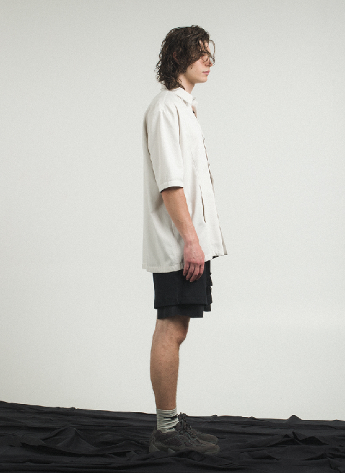 Boxy silhouette short sleeve shirt with side pockets. The raw-edge collar is secured with seams to keep the fabric from fraying further than intended by design making the garment more durable. The piece also features hem facings that add to the garment’s durability and longevity. The buttons are made from horns, a natural substitute for plastic, that are ethically collected at the end of the natural lifecycle of the animals. The certified 100% organic cotton fabric is sourced from a qualified, European manufacturer and the garment is made ethically in Hungary.